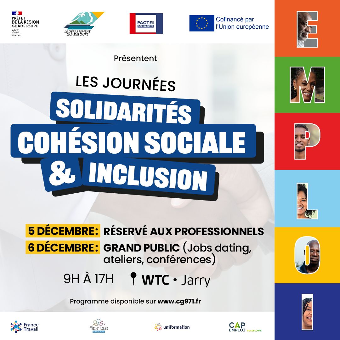 Cet événement est une occasion de fédérer les professionnels de la cohésion sociale et des solidarités de l’archipel Guadeloupe, pour échanger, partager et établir des synergies autour de stands, de conférences et d’ateliers thématiques.